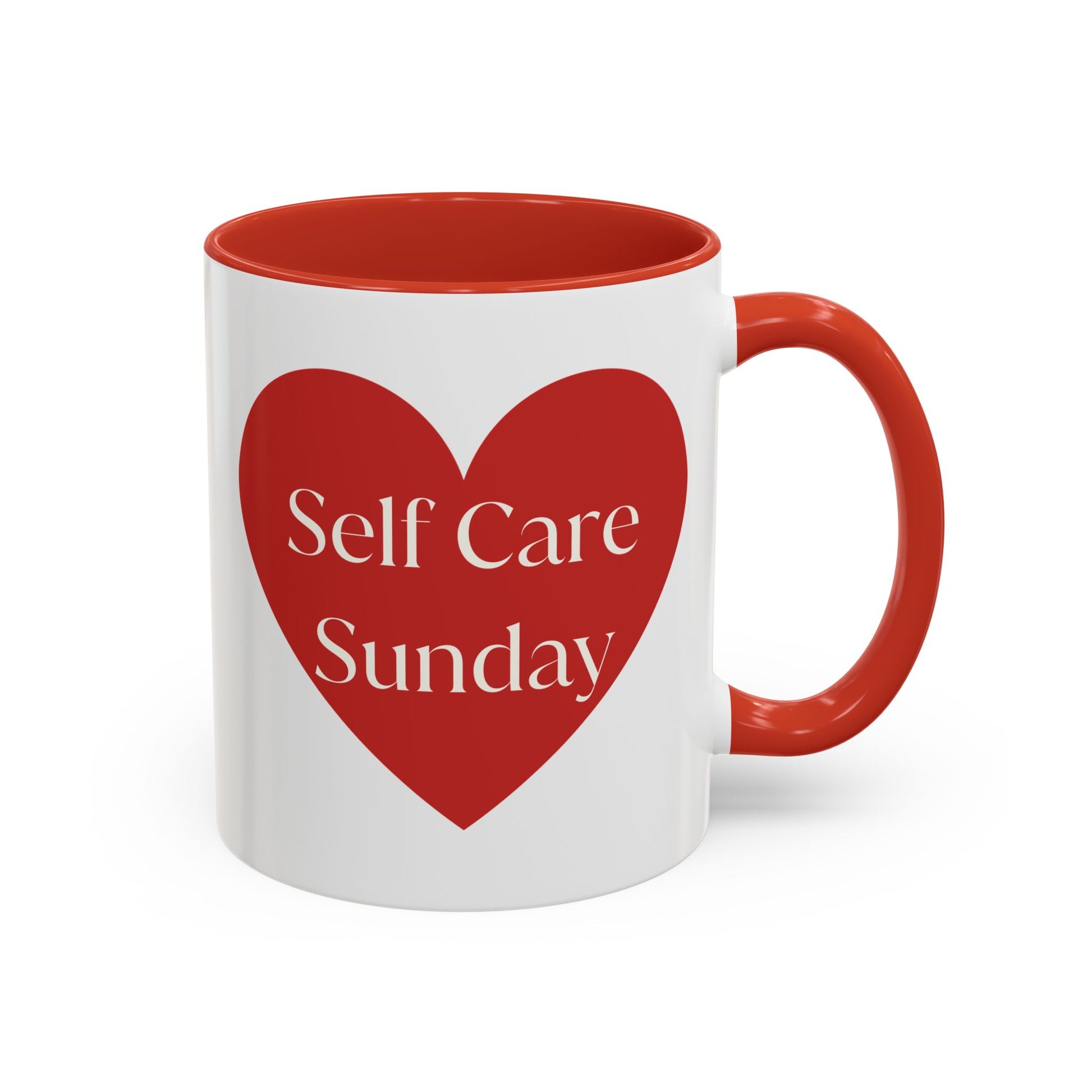 This ceramic mug is perfect for a cozy Self Care Sunday with its red or black options and a red heart design. The 'Self Care Sunday' message inside the heart adds a touch of self-love to your morning routine. Ideal for those who enjoy relaxing weekends and practicing self-care, this mug is a great gift for birthdays, Valentines Day, holidays, or simply for treating yourself.