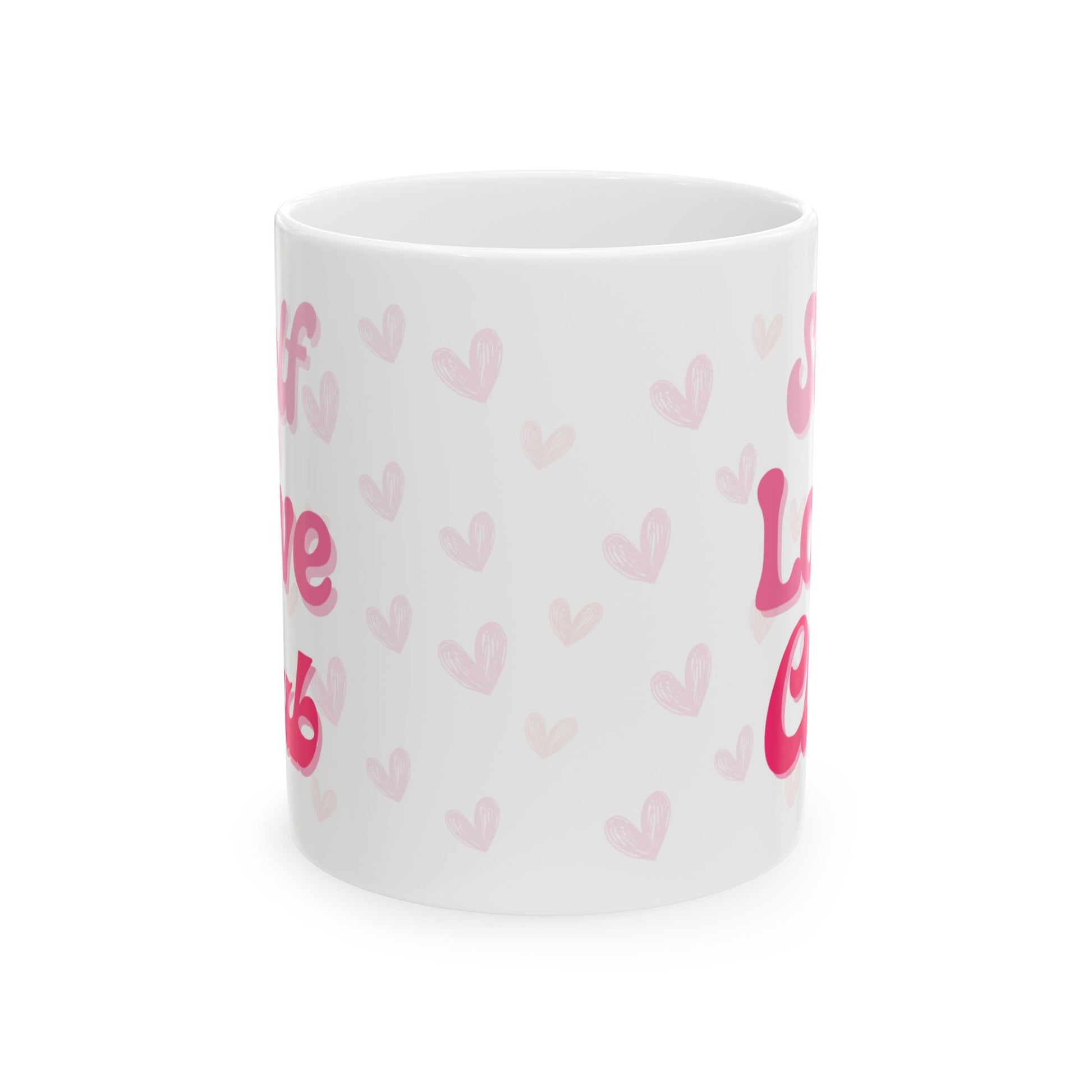 Self Love Club Mug, Heart Patterned Coffee Cup, Valentine's Day Gift, Self Care Gift, Coffee Mug, Gift for Her
